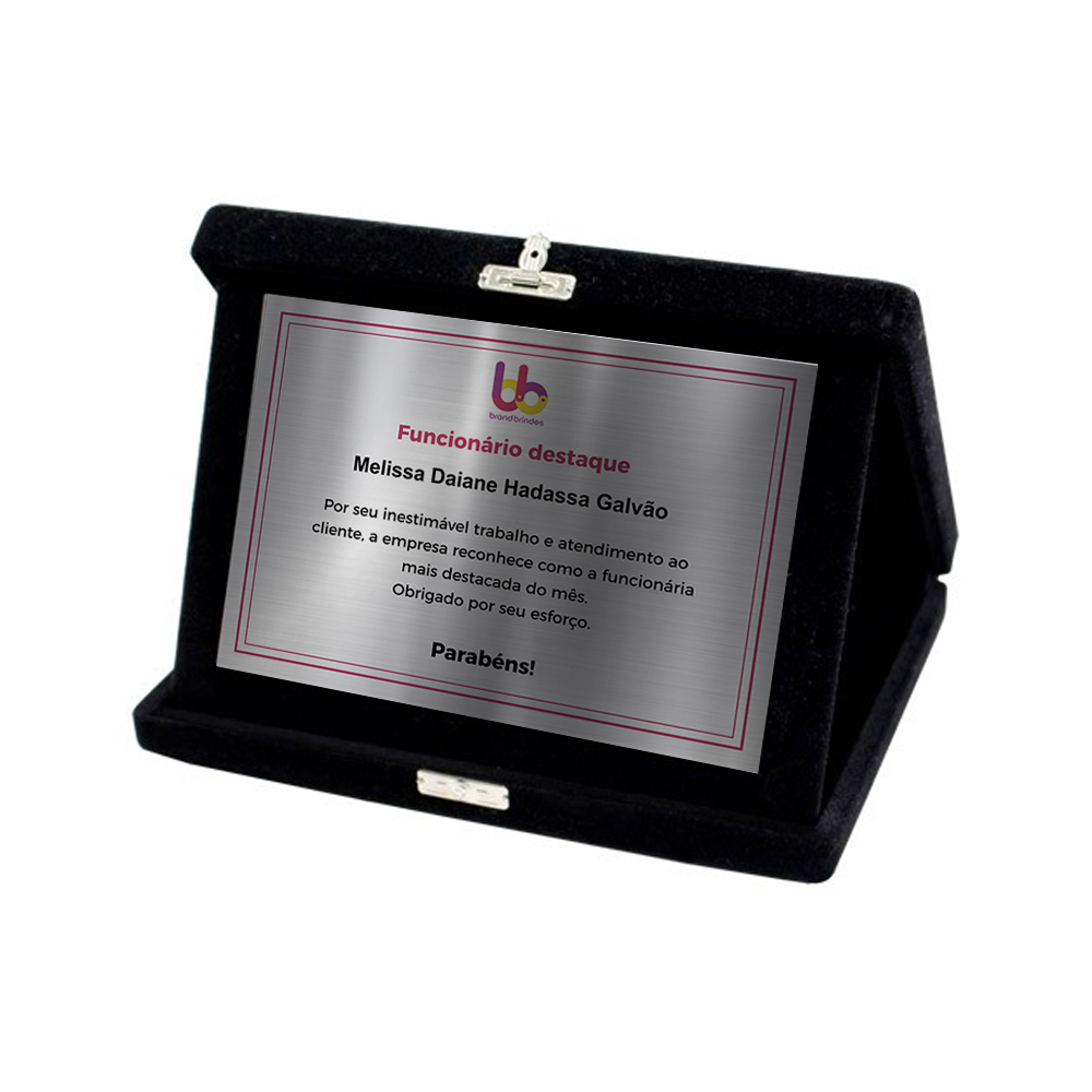 PLACA DE AÇO COM ESTOJO EM VELUDO 20X15CM ESPESSURA 0,6MM
