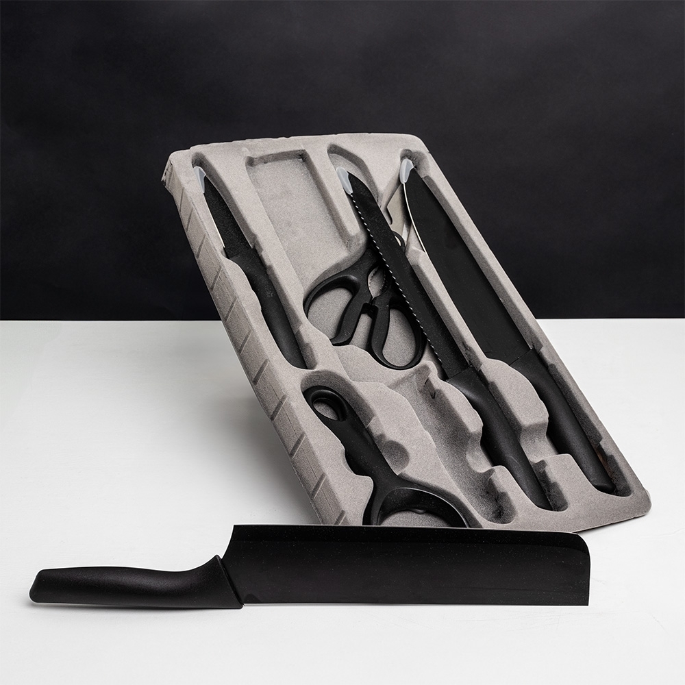 Descrição: Kit Facas de 6 Peças em Inox. Com lâminas em aço inoxidável de alta durabilidade, cada faca proporciona cortes precisos e eficientes, além disso, os pegadores oferecem conforto e segurança, mesmo durante o uso prolongado. O conjunto inclui uma faca cutelo , uma faca de chef , uma faca de pão , uma faca de aparar com , uma tesoura multifunção e um descascador de legumes.