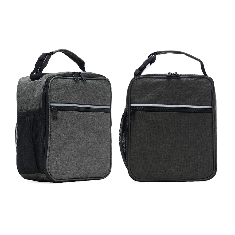 Descrição: Bolsa térmica de nylon com dois compartimentos, capacidade de 6 litros. Com bolso telado e tela média de proteção interna, a bolsa possui uma faixa frontal refletiva, bolso lateral telado e alça de mão com fivela de encaixe.