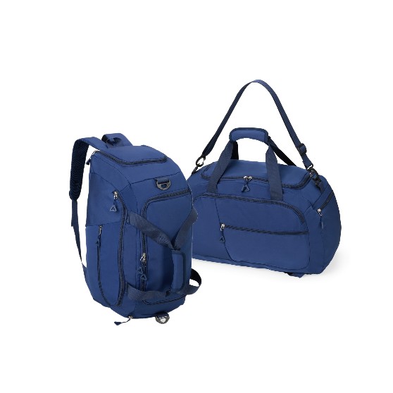 Descrição: Bolsa esportiva. Feita em Oxford resistente à água e com capacidade de 28 litros, possui 4 compartimentos principais amplos, incluindo um bolso lateral. Pode ser transportada de três formas diferentes: pela horizontal e com as mãos através do par de alças reforçadas com uma liga com fechamento em velcro para junção, também pela horizontal, com os ombros, adicionando a alça transversal removível ou ainda na vertical ao montar as alças para as costas localizadas na parte traseira, transformando-a em uma mochila convencional, com o bolso amplo da lateral ocupando o papel de abertura principal.