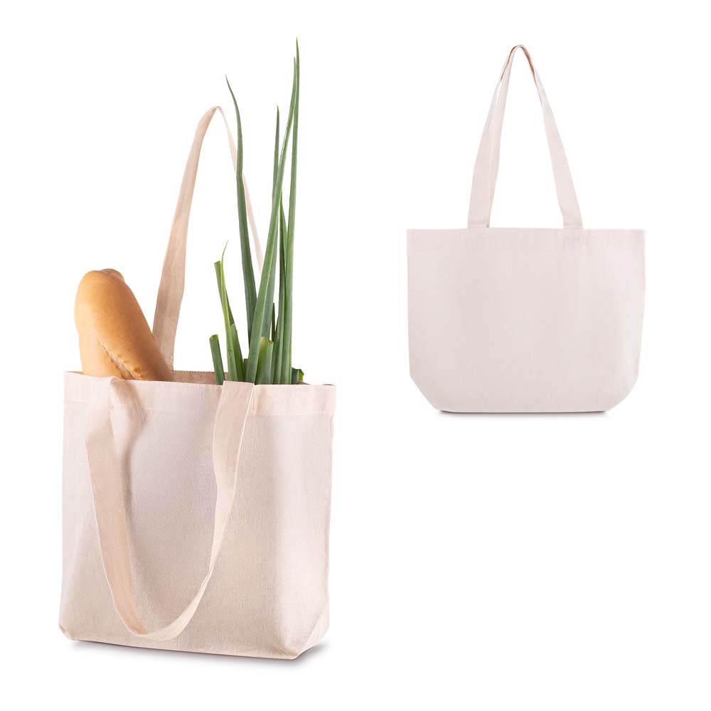 Descrição: Sacola em Algodão Cru 120g/m²com base plana.