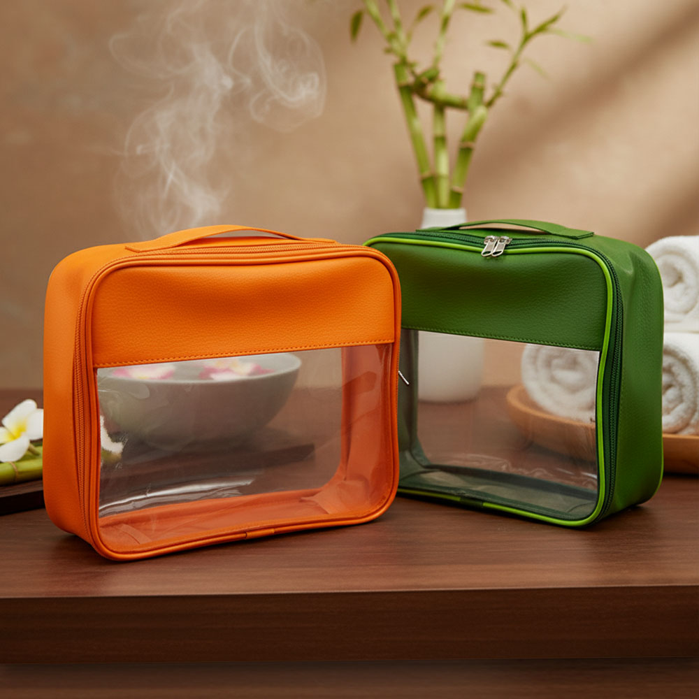 Nécessaire multiuso com alça de mão 25x22x8cm em sintético, cristal frontal e fechamento zíper
