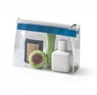 Bolsa de cosméticos em EVA com fecho de correr e puxador metálico. Apropriado para viagem de avião. Medidas: 200 x 145 x 70 mm
