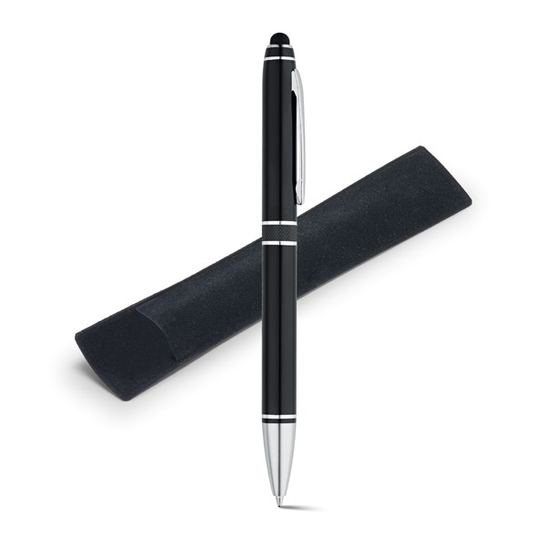 Caneta esferográfica em Alumínio, com ponteira touch.
