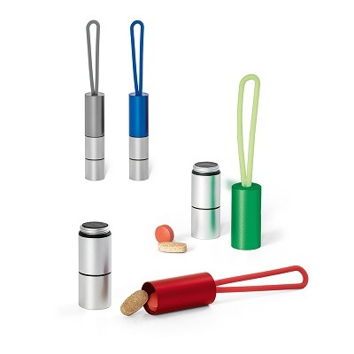 Chaveiro em alumínio com led e porta comprimidos