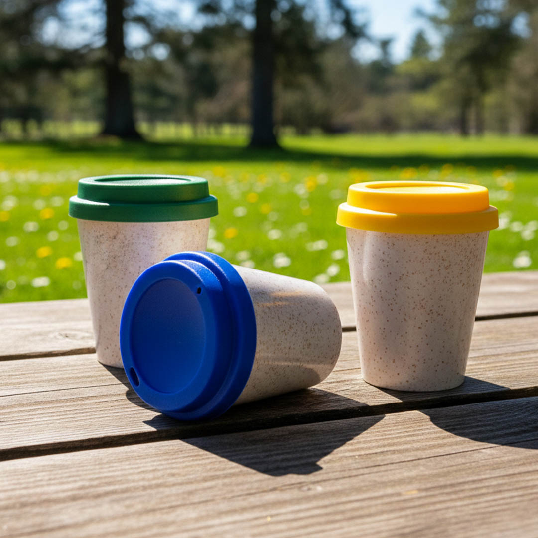 Copo plástico e fibra de arroz  350ml com tampa em PP (Polipropileno) com fibra de arroz