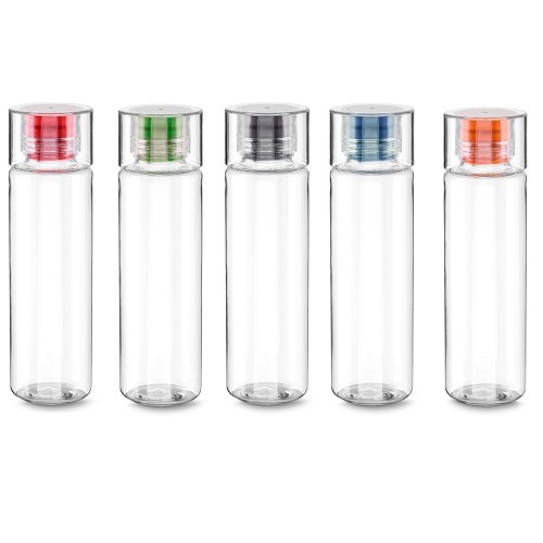 Garrafa plástica 600 ml com borracha silicone em cores, plástico utilizado AS (Estireno de acrilonitrilo).