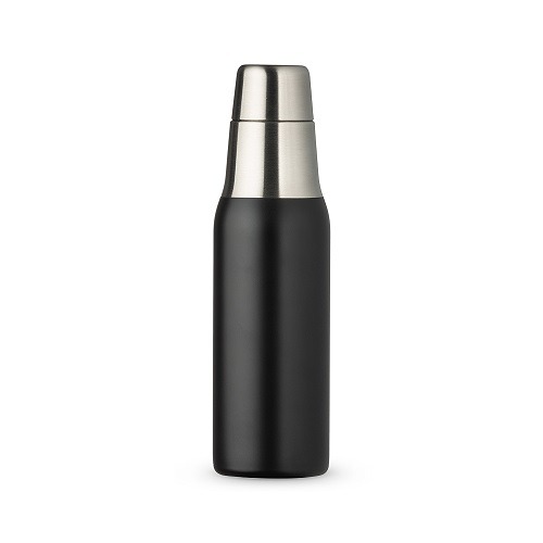 Descrição: Garrafa térmica 550ml inox com pintura preto fosco e tampa rosqueável.
