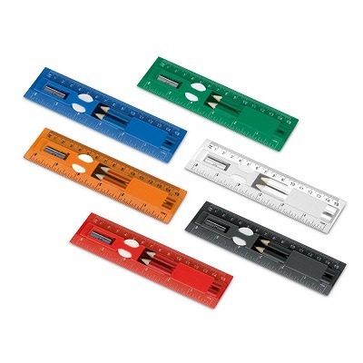 Incluso régua de 15 cm, 2 mini lápis, 1 borracha e 1 apontador.