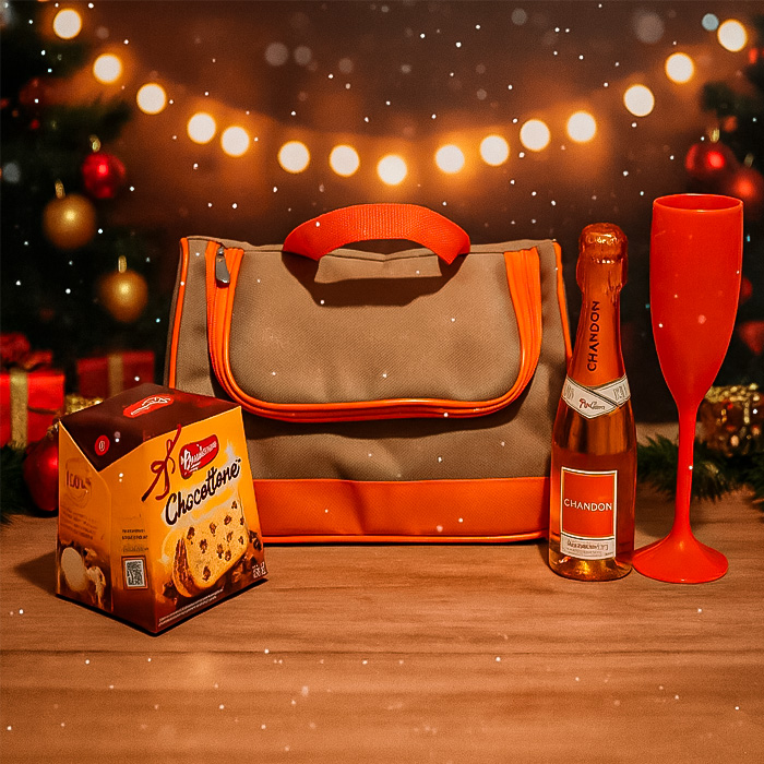1 Bolsa termica(BC 9314) 1 Chandon Baby Passion 187ml 1 taça (71113) 1 Chocottone ou Panettone 80G