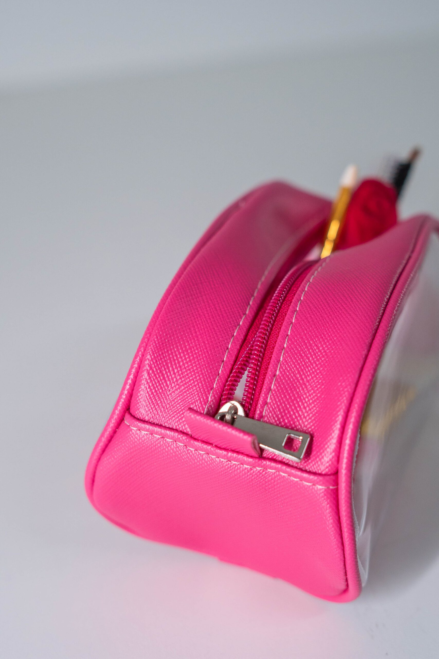 Descrição: Necessaire 16x10x8 Cm Em Cristal Com Sintético, Vivo Na Estrutura, Fechamento Em Zíper, Acabamento Interno Em Víes Borneon 25mm
