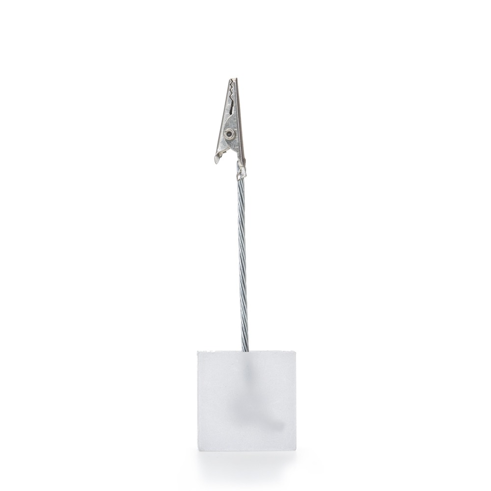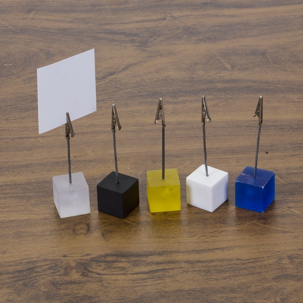 Descrição: Porta recado jacaré colorido com cabo metal , formato quadrado com ponta e feito de resina.