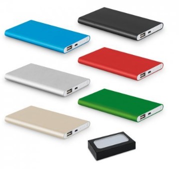 Power bank para celular de alumínio, modelo slim.